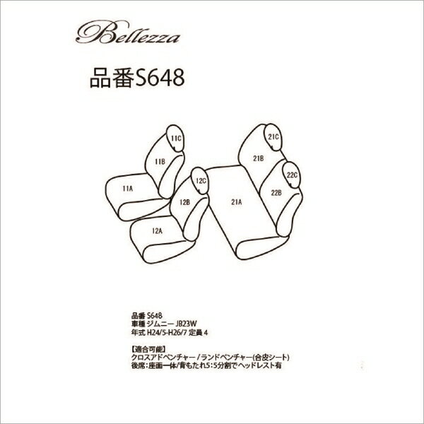 BELLEZZA(ベレッツァ)の一覧はこちら(適合可能)【型式】JA23W ジムニー【年式】H24/5-H26/7【定員】4人【グレード】 クロスアドベンチャー / ランドベンチャー(合皮シート) / 後席は座面一体、背もたれ5:5分割でヘッドレスト有■サイズ(cm)WxDxH:66x53x37■重さ(kg):10■ご購入前に、車両型式、エンジン型式、駆動方式、年式、グレード、シート形状等をご確認頂き、メーカーHPで車両適合に誤りがないか必ずご確認下さい。