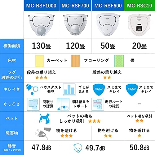 ◆商品名:パナソニック ロボット掃除機 RULO(ルーロ) ホワイト お掃除ロボット MC-RSC10-W 本体サイズ:幅249mm×奥行249mm×高さ92mm 消費電力:(充電中)約17W、(本体を外したとき)約0.6W 付属品:充電台(1個),ダストボックス お手入れブラシ(1個) コンパクトボディで狭い場所もラクラク。