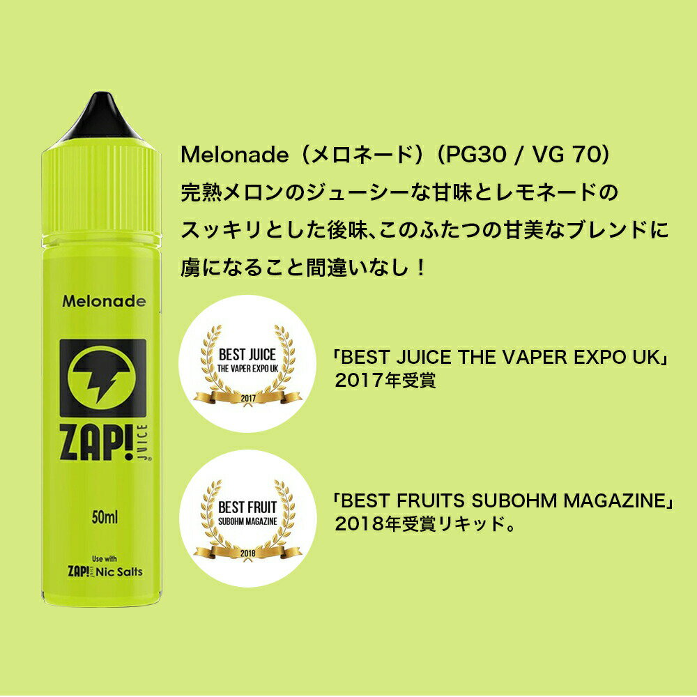 ZAP ! JUICE 50ml ザップジュース リキッド フレーバー pod ニードルボトル付 フルーツ ドリンク 完熟 メロン レモネード ライチ ピーチ アイスティー 桃 茶葉 酸味 甘味 Melonade Lychee Lemonade Peach Ice Tea VAPE ベイプ 電子タバコ リキッド 大容量 輸入 UK イギリス
