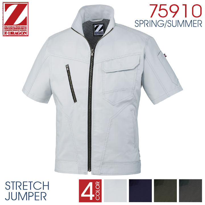 半袖ジャンパー ブルゾン ストレッチ 作業ジャンパー 作業着 作業服 ジャケット アウター ワークウェア カジュアル スタイリッシュ Z-DRAGON 自重堂 春用 夏用 半袖 jd-75910
