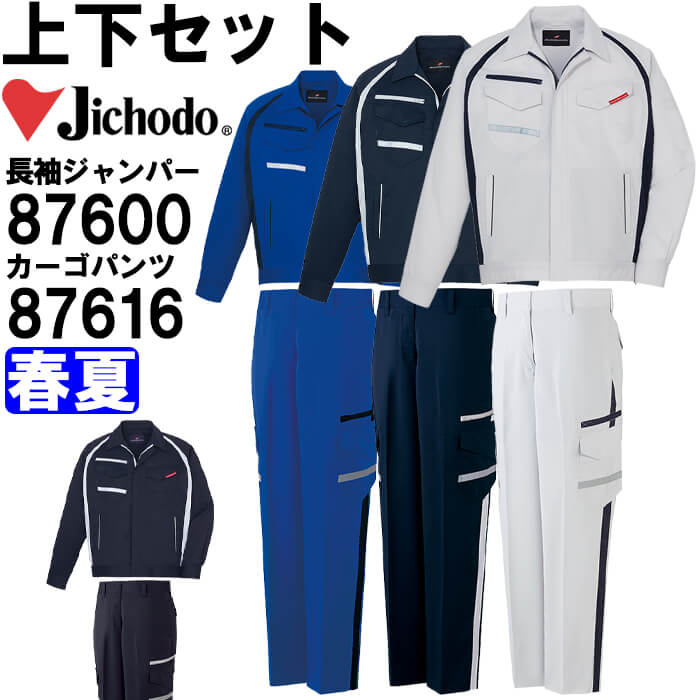 作業服 上下セット 自重堂 Jichodo 長袖ジャンパー 87600 EL & レディースカーゴパンツ 87616 81cm-101cm 春夏 ストレッチ 制電 作業着 レディース 送料無料