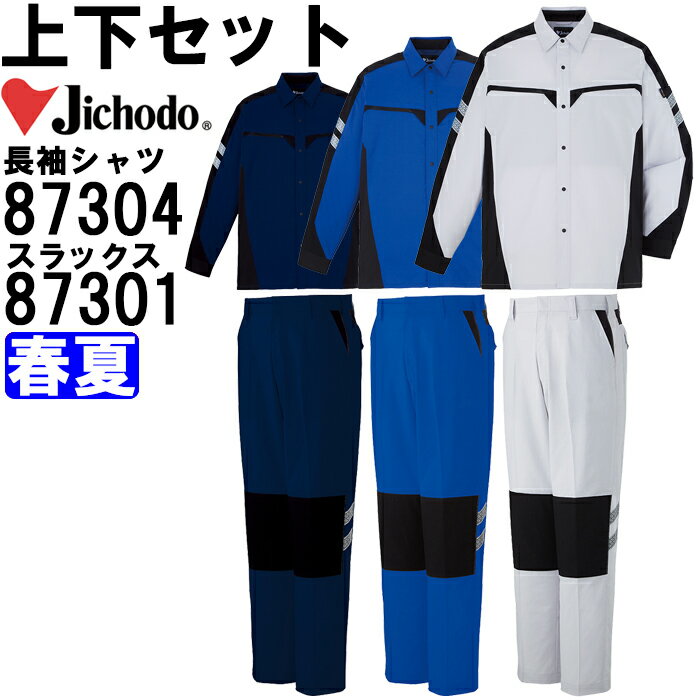 作業服 上下セット 長袖シャツ 87304 EL & ノータックパンツ 87301 91cm-106cm 春夏 自重堂 Jichodo ストレッチ 作業着 メンズ