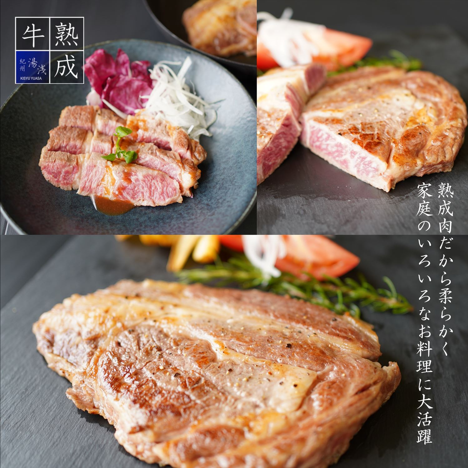 徹底した温度管理と熟成期間のもと、旨味を引き出し、柔らかく仕上げたのが我々自慢の湯浅熟成牛です。