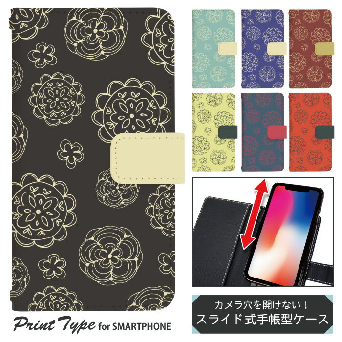 手帳型ケース 全機種対応 スライド式 iPhone13 iPhone12 mini iPhone11 Pro Max iPhoneSE 第3世代 Xperia AQUOS Galaxy ケース SO-53B SO-52B SO-51B SO-41B SH-54B SH-51B SC-53C SC-51C SC-56B SOG05 SOG04 SOG03 SHG06 SHG05 SCG15 SCG13 FCG01 花柄 ボタニカル柄
