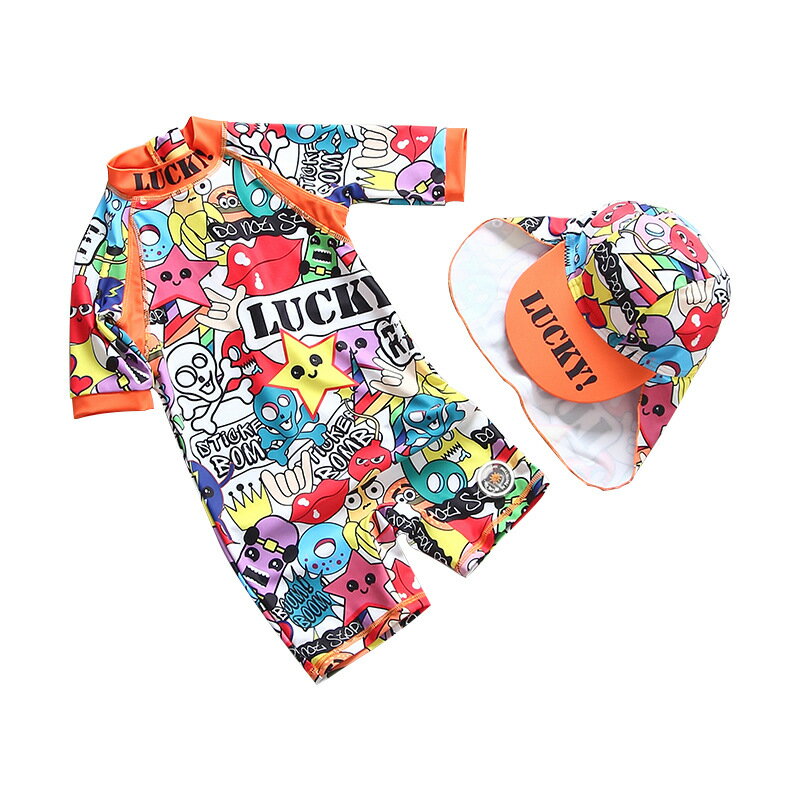 【送料無料】水着 子供 2点セット 半袖 オールインワン ベビー水着 キッズ水着 子供水着 女の子水着 セパレート スイミング インポート 幼稚園 子供 女児 小学生 ジュニア 旅行 水着 リゾート 日焼防止 紫外線防止 UPF50+ 帽子 80 90 100 110 120 130 140cm