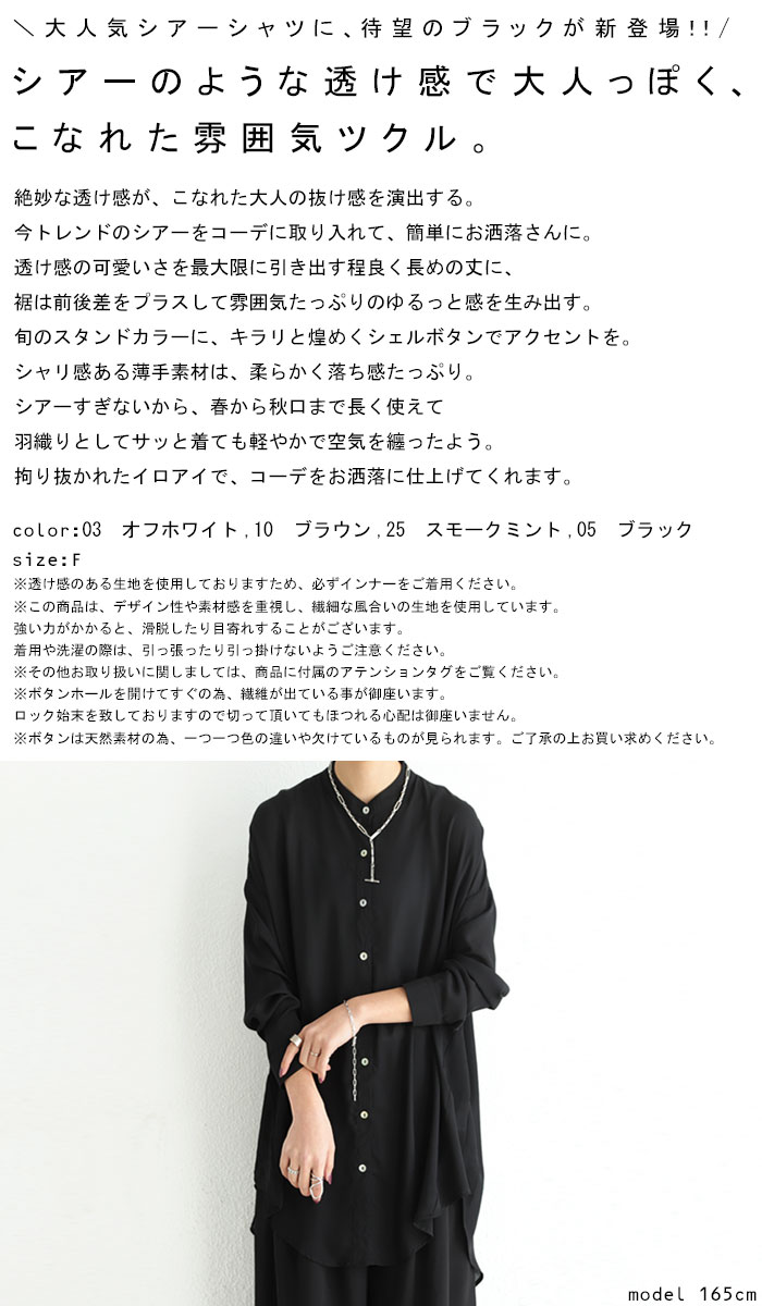 シャツ シアーの柔らか素材にルーズなシルエットが大人の抜け感を演出。・再再販。(100)メール便可 few