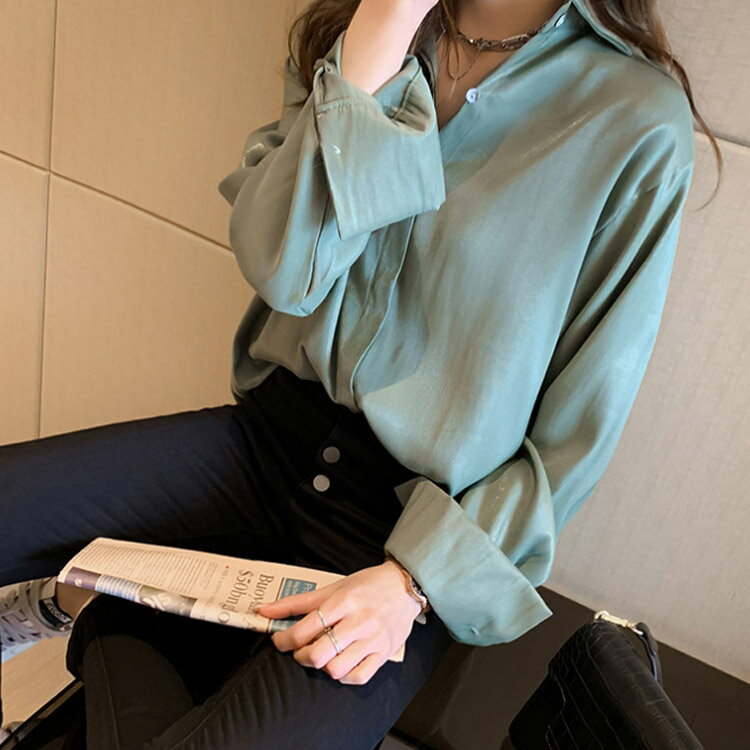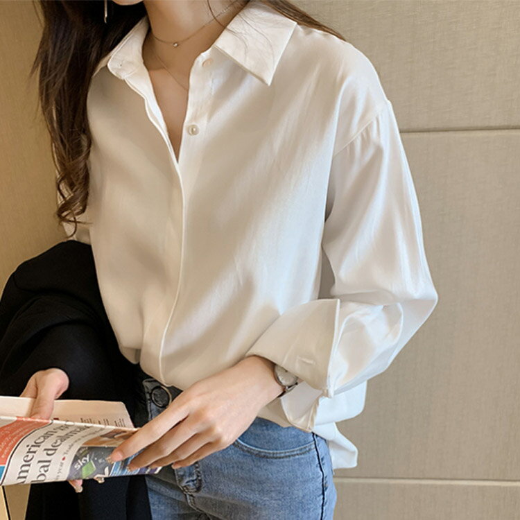 全4色×7サイズ!秋服 シャツ ブラウス レディース ロングスリーブ 無地シャツ 開襟 長袖シャツ カジュアルシャツ 大きサイズ 通勤 春 秋送料無料