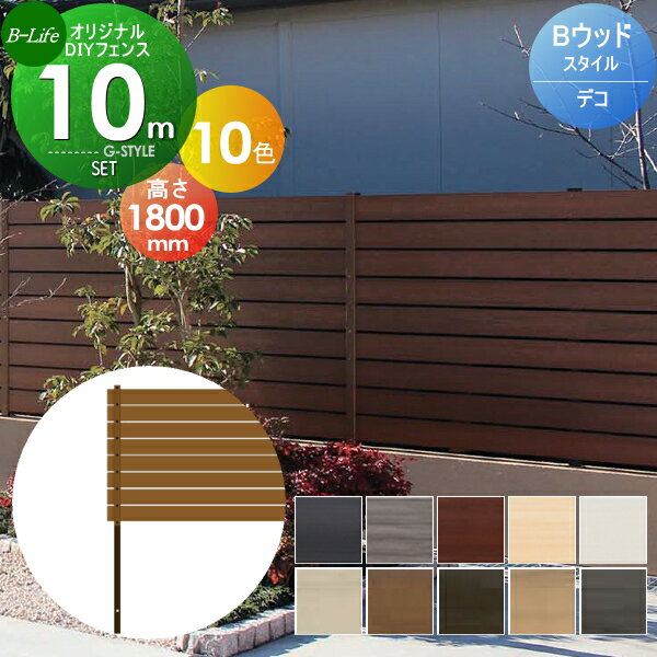 フェンス 目隠し ビーライフ 三富Bウッドスタイル デコ2 ハーフタイプ 約10M(5スパン分) 本体・柱・部品 組立て部材セット H1800mm×L9975mm用 ウッドスタイルフェンスセット 人工ウッド 人工木材 樹脂製 横張り 樹脂製 板材 境界 屋外