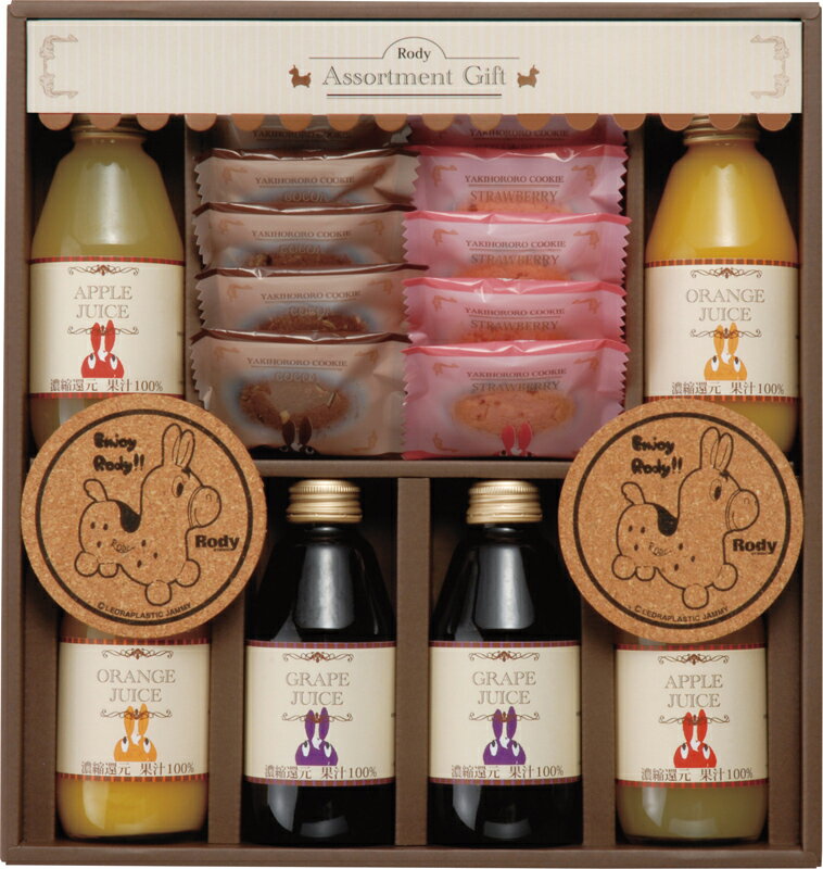 【包装・熨斗対応】ジュース&クッキーセット リンゴジュース オレンジジュース グレープジュース クッキー コースター RODY ロディ お菓子 キッズ 子ども バレンタイン ホワイトデー 贈り物 ギフト 返礼品 お返し お祝い 返礼品 結婚祝 出産祝