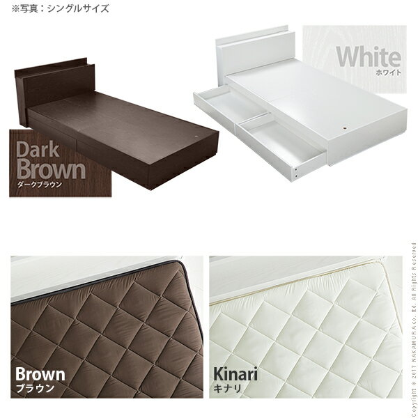 ●安心のメーカー2年保証(ベッドのみ)【セット構成】ベッドx1敷布団x1【カラーバリエーション】[ベッド]ダークブラウン・ホワイト[敷布団]ブラウン・キナリ【仕様】[ベッド]本体:プリント紙化粧パーチクルボードコンセント:2口(1500W)収納:引出しx2◎組立品[敷布団]側地:ポリエステル100%(ブロード)中綿:ポリエステル100%【サイズ】[ベッド]幅141.5x奥行218.5x高さ69.5(床板高さ26)cm重量:約82kg[敷布団]約140x210cm・厚み約9cm重量:約7kg株式会社ナカムラ(OI-3500624)
