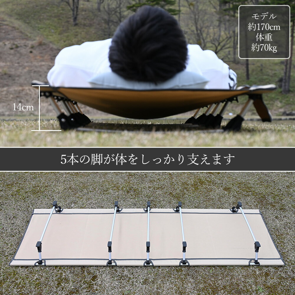 【商品説明】折りたたみ キャンプコット ベージュ地面からの距離があるので地面の温度・状態に左右されず横になれますローコットで子どもが使用する際も安心【サイズ・重量】展開時:187×60×14cm収納時:60×15×15cm重量:2.14kg耐荷重:150【仕様】材質:600Dオックスフォードフレーム:A7075アルミニウムカラー:ベージュ 配送について 本州/四国/九州_送料無料北海道_送料無料沖縄_1540円※離島は別途追加料金がかかります。