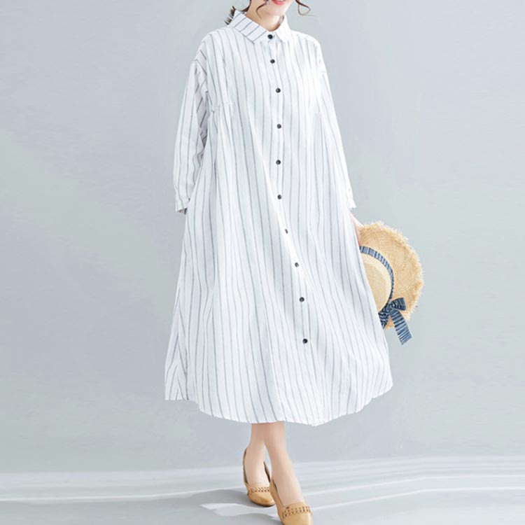ストライプ柄ロング丈シャツワンピース 幅広いシーンで使えるシンプルなデザイン コーデに合わせやすいベーシックな4色展開 ゆったりストレートタイプなので体型カバー効果バツグン 《3》ふくらはぎまでカバーするやや長めの丈感 サイズ 2XL サイズについての説明 着丈:120 バスト:140 袖丈:55 肩幅:40 素材 麻 色 カラー01 カラー02 カラー03 カラー04 備考 注意★